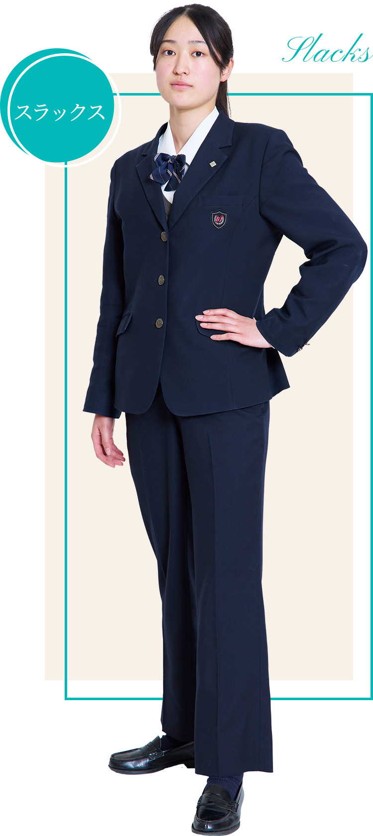 本校の特徴を踏まえて「一人一人の個性を輝かせる制服」をテーマに制作。